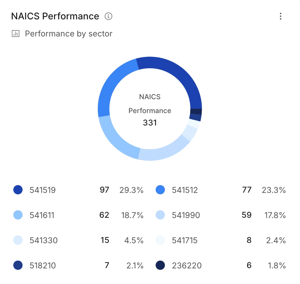 Track win rates, volume, and value by NAICS codes.